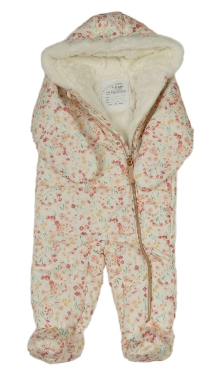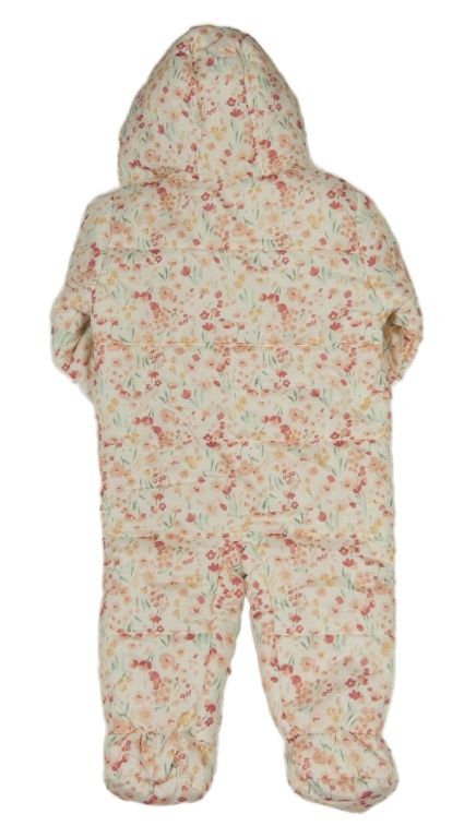 • Smetanová prošívaná šusťáková zimní kombinéza s kytičkami a kapucí s kožešinou Nutmeg