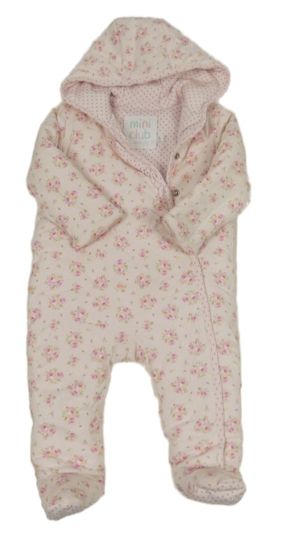 Světlerůžová bavlněná zateplená kombinéza s kytičkami a kapucí Miniclub