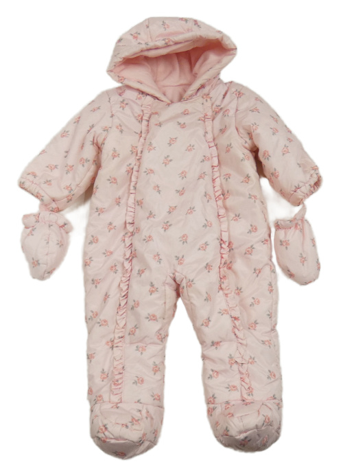 Růžová květovaná šusťáková zimní kombinéza s kapucí + rukavice George