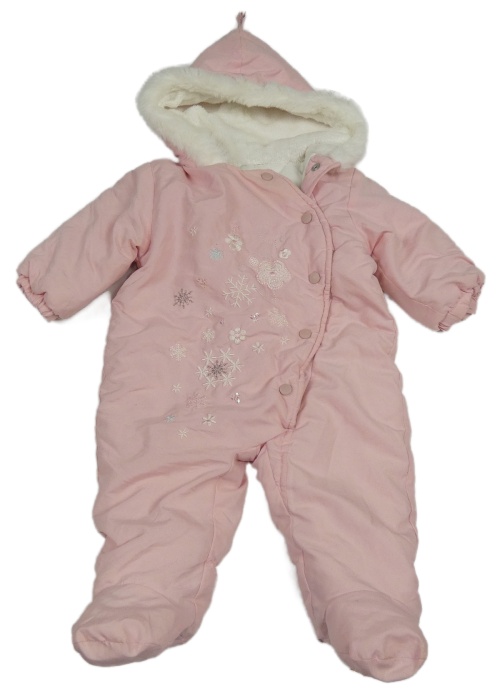 Světlerůžová šusťáková zimní kombinéza s výšivkami a kapucí Matalan