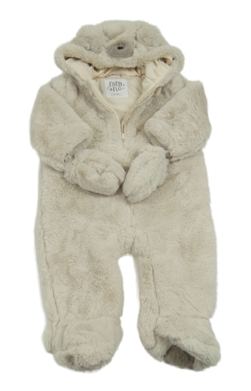 • Béžová kožešinová zateplená kombinéza s kapucí + rukavice F&F