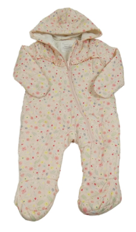 Světlerůžová šusťáková zateplená kombinéza s kytičkami a kapucí Primark