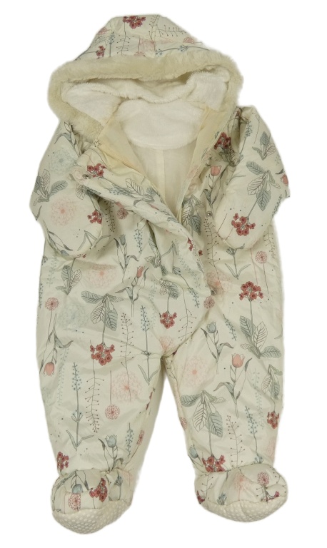 Bílá květovaná šusťáková zimní kombinéza s kapucí s kožešinou Nutmeg