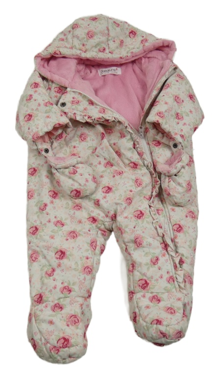 Bílá květovaná šusťáková zimní kombinéza s kapucí + rukavice Babaluno