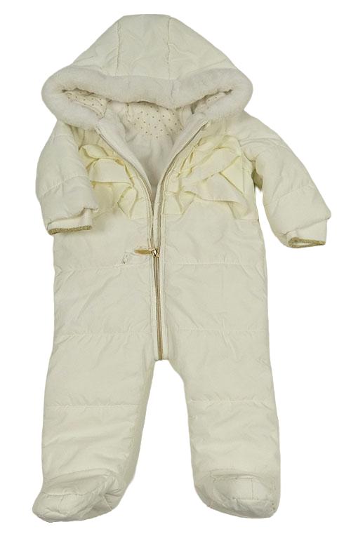 Smetanová šusťáková zimní kombinéza s volánky a kapucí Matalan