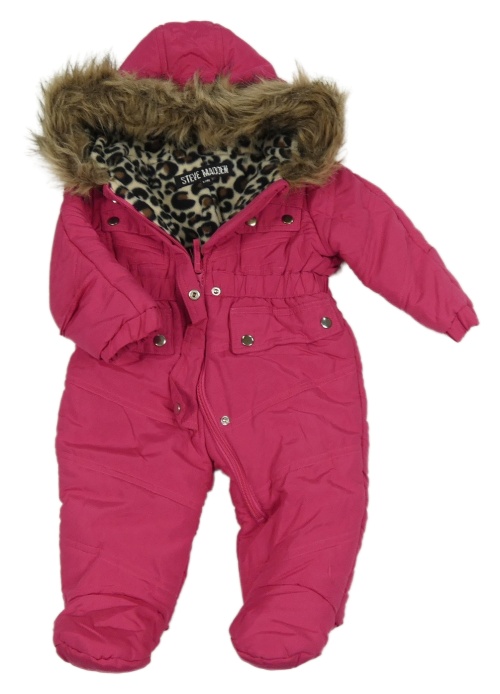 • Tmavorůžová prošívaná šusťáková zimní kombinéza s kapucí s kožešinou STEVE MADDEN