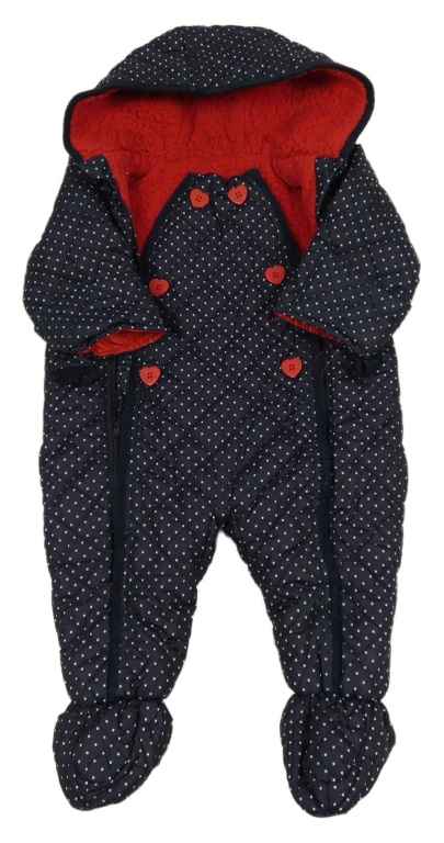 Tmavomodrá šusťáková puntíkatá zimní kombinéza s volánky a kapucí Levi´s