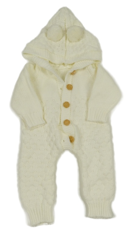 Smetanová pletená vzorovaná kombinéza s kapucí