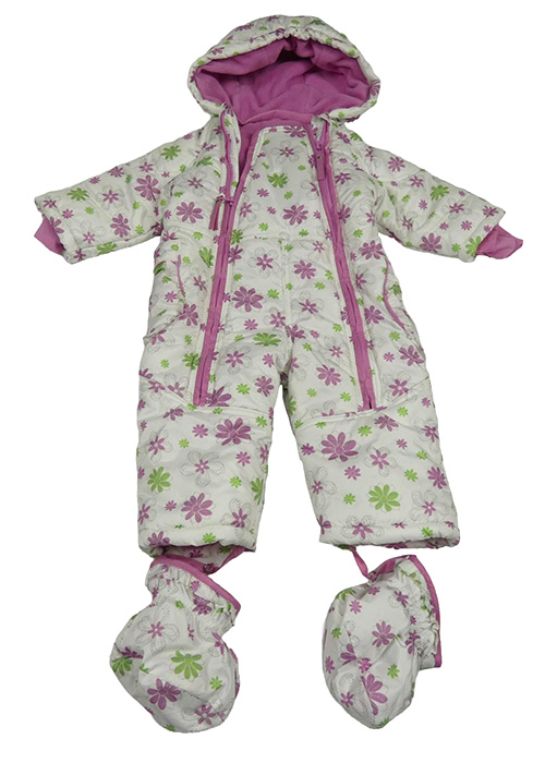 Bílá květovaná šusťáková zimní kombinéza s kapucí + capáčky