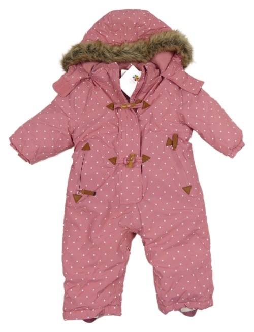 Nové - Starorůžová puntíkatá šusťáková zimní kombinéza s kapucí Topomini