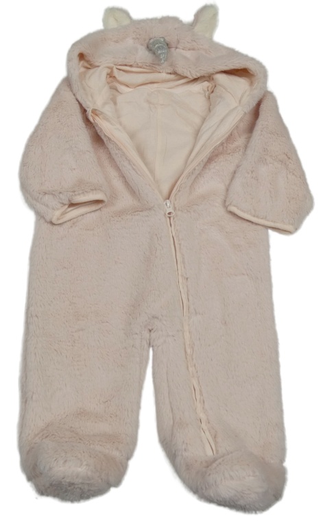 Světlerůžová chlupatá podšitá kombinéza s kapucí - jednorožec M&S