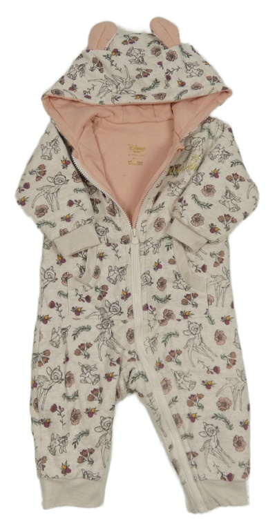 • Světlebéžová vzorovaná zateplená kombinéza s Bambim a květinami a kapucí Primark