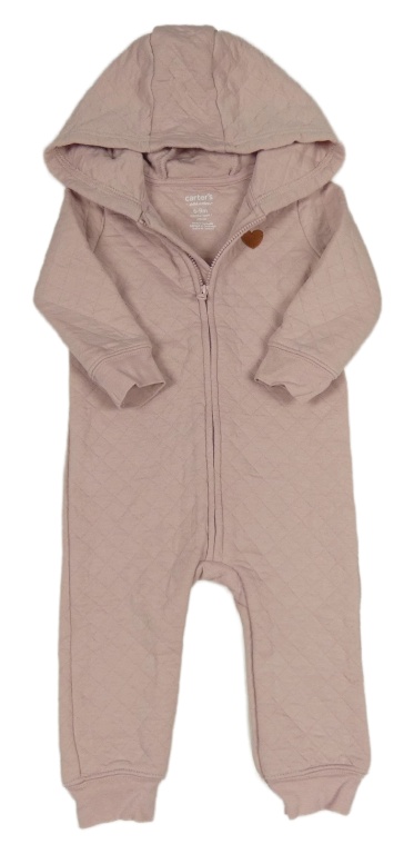 Pudrová prošívaná tepláková kombinéza se srdíčkem a kapucí Carter's