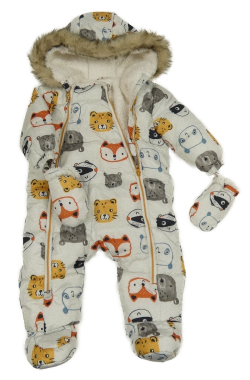 • Šedá melírovaná šusťáková zimní kominéza se zvířátky a kapucí + rukavice F&F