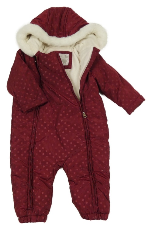 Vínová šusťáková puntíkatá zimní kombinéza s kapucí Tu