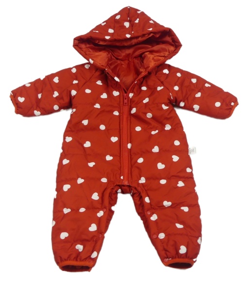 Červená šusťáková zimní kombinéza se srdíčky a kapucí Shein