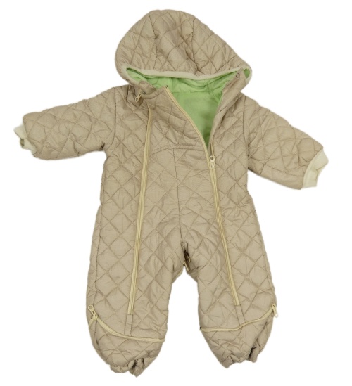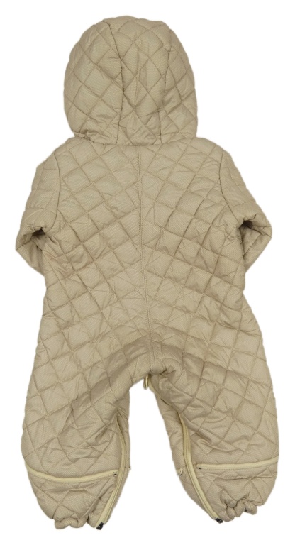 Béžovo-smetanová puntíkatá šusťáková zimní kombinéza s kapucí