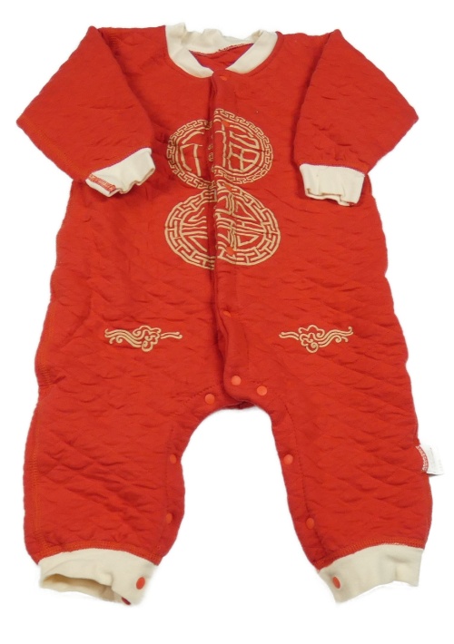 Červeno-smetanová prošívaná tepláková vyteplená kombinéza s potiskem