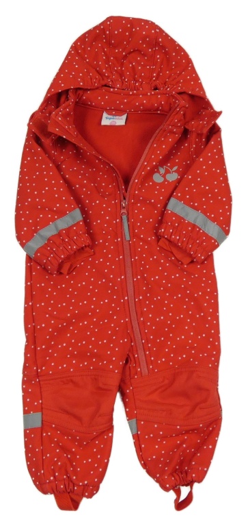 Červená puntíkatá softshellová kombinéza s třešničkami a kapucí Topomini