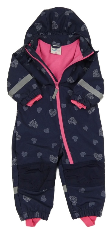 Tmavomodrá softshellová kombinéza se srdíčky a kapucí Topomini