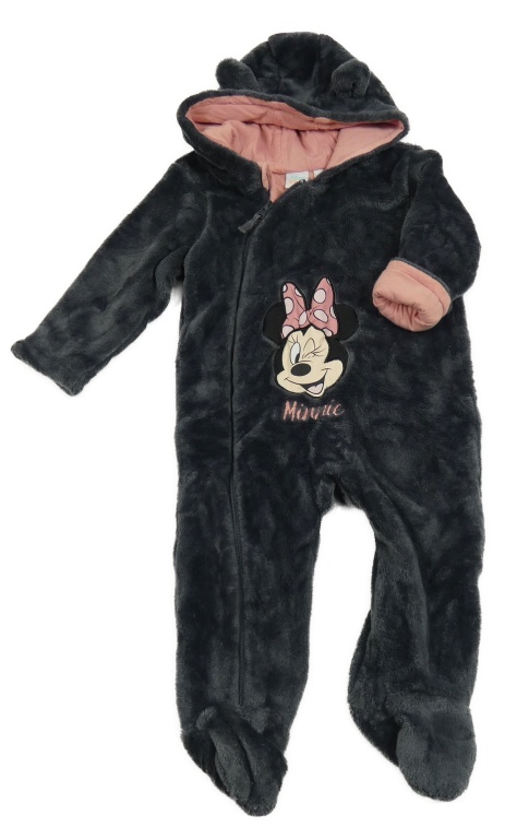 Antracitová plyšová podšitá kombinéza s Minnie a kapucí Disney
