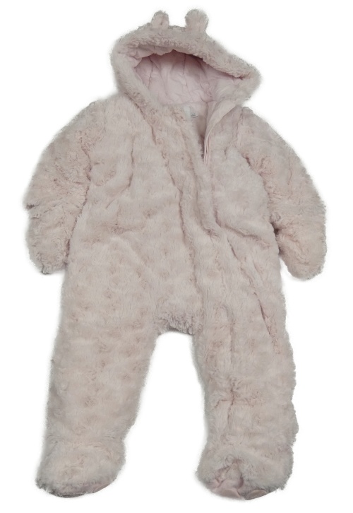 Světlerůžová kožešinová zateplená kombinéza s kapucí Miniclub