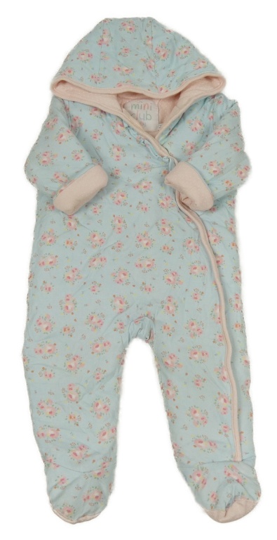 Světlemodro-růžová květovaná zateplená kombinéza s kapucí Miniclub