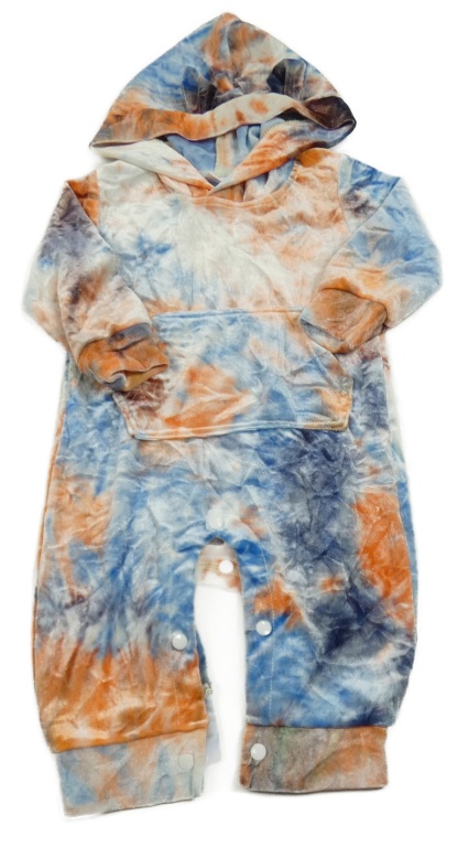 • Modro-bílo-oranžová batikovaná sametová kombinéza s kapucí