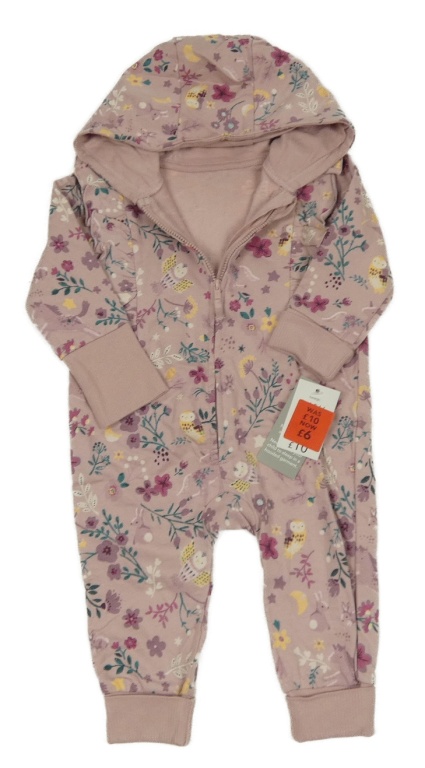 Nové - Starorůžová květovaná tepláková kombinéza se sovami a kapucí George