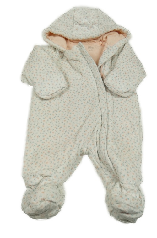 Bílá květovaná plyšová zateplená kombinéza s kapucí M&S