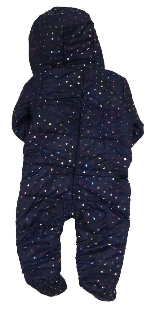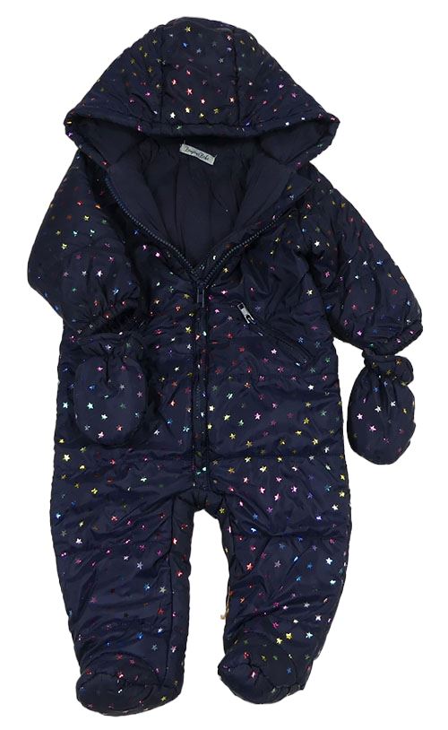 Tmavomodrá šusťáková zimní kombinéza s hvězdami a kapucí + rukavice