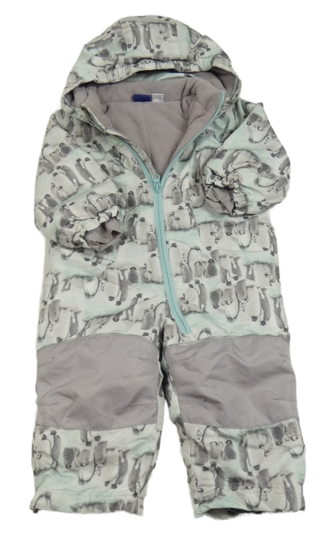 • Mátovo-šedá šusťáková zimní kombinéza s tučňáky a kapucí Lupilu