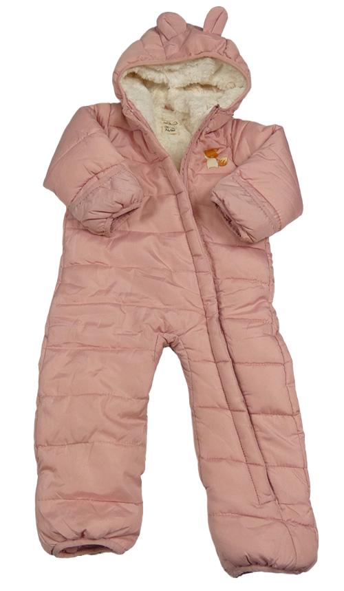 • Růžová prošívaná šusťáková zimní kombinéza s liškou a kapucí s oušky POCOPIANO