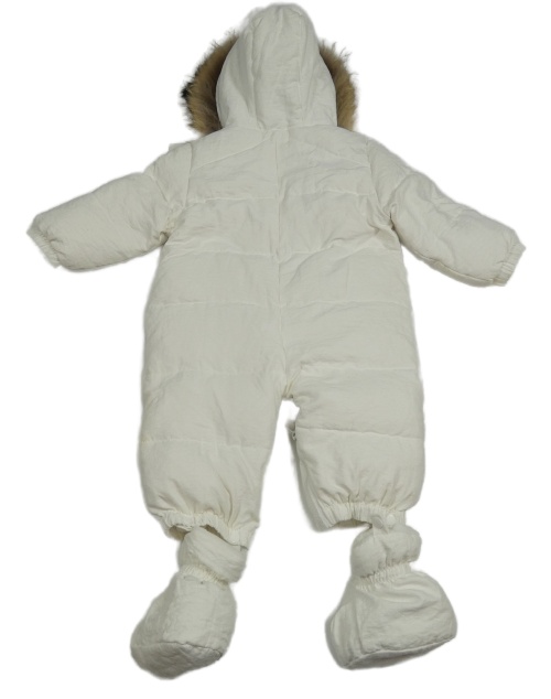 Nová - bílá prošívaná šusťáková zimní kombinéza s kapucí s kožešinou + capáčky