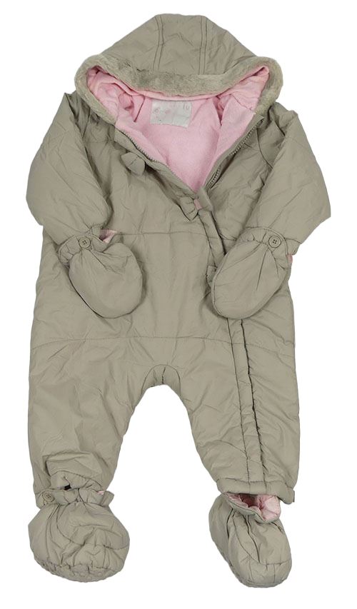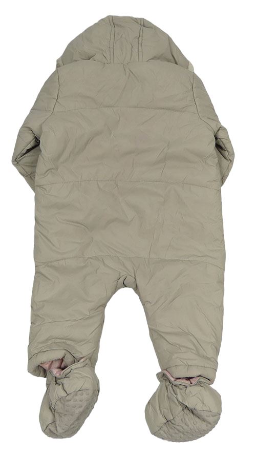 Béžová šusťáková zimní kombinéza s mašlemi a kapucí + boty + rukavice Tu