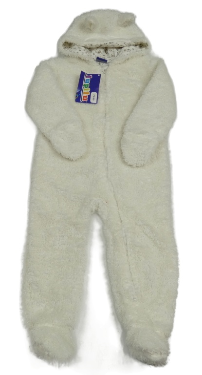 Nová - bílá huňatá podšitá kombinéza s kapucí s oušky lupilu