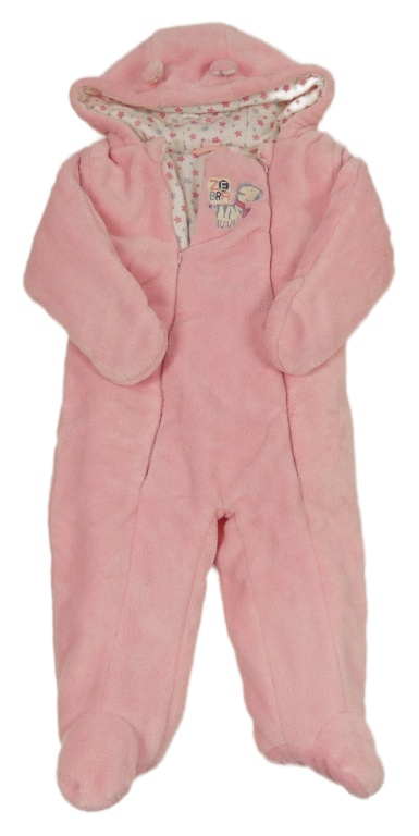Růžová plyšová zateplená kombinéza se zebrou a kapucí Papagino