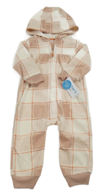 Nové - Růžovo-bílá kostkovaná fleecová kombinéza s kapucí Carter´ s