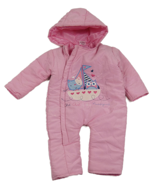 Růžová šusťáková zimní kombinéza s lodí a kapucí