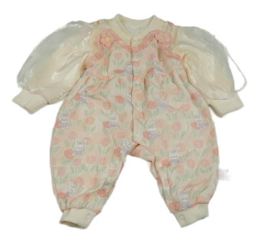 Růžovo-žlutý teplákový overal s kytičkami a králíčky