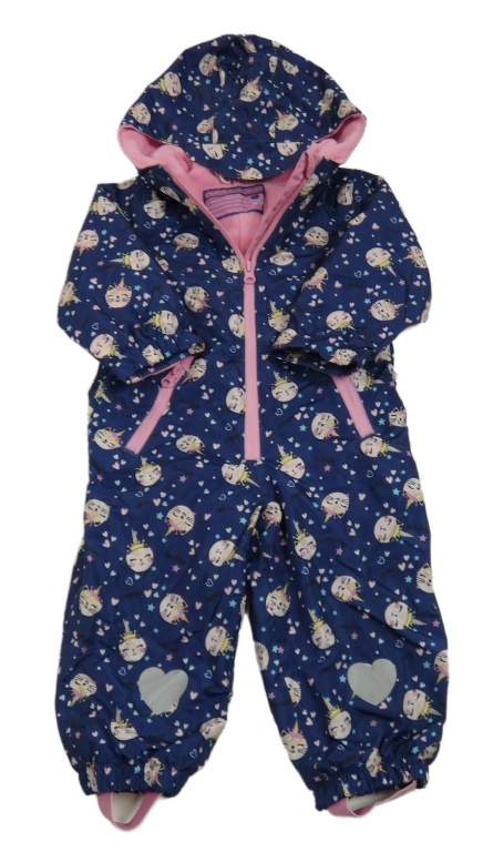 Tmavomodrá šusťáková zateplená kombinéza s kočkami a kapucí Impidimpi
