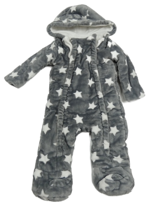 • Šedá plyšová zateplená kombinéza s bílými hvězdičkami a kapucí F&F