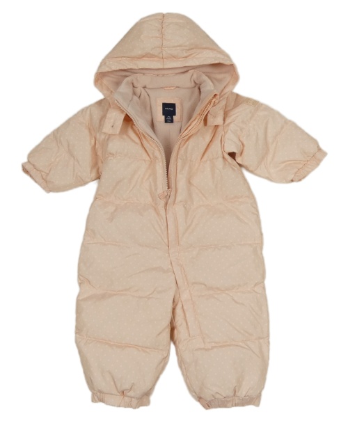 Světlebroskvová puntíkatá prošívaná šusťáková zimní kombinéza s kapucí GAP