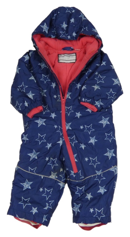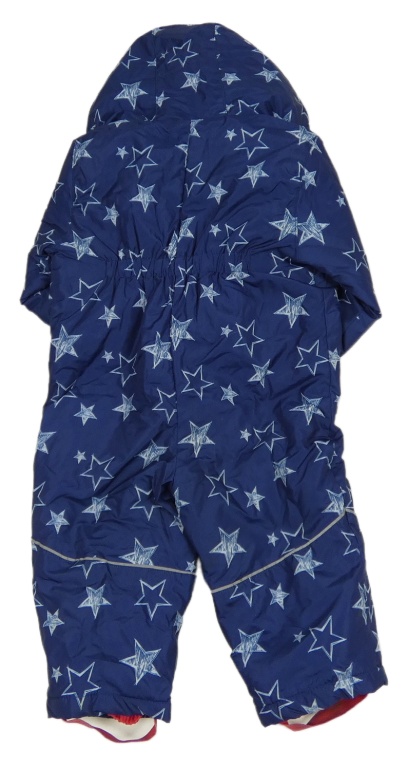 Tmavomodrá šusťáková zimní kombinéza s hvězdičkami a kapucí lupilu