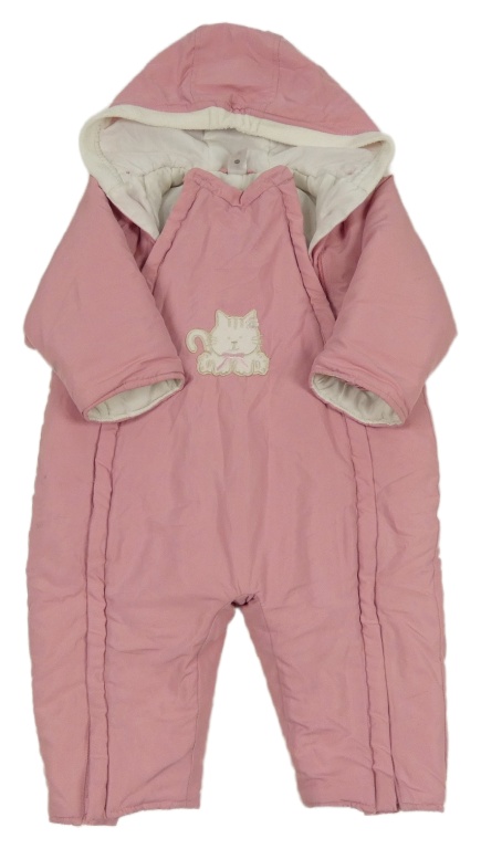 Růžová šusťáková zimní kombinéza s kočičkou a kapucí C&A