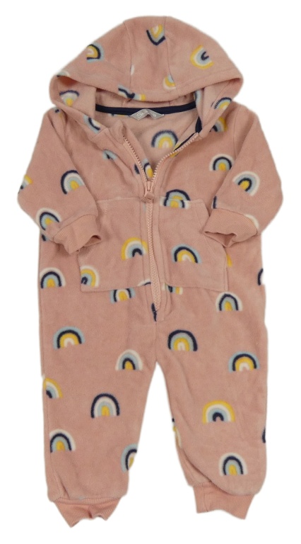 Růžová fleecová kombinéza s duhami a kapucí