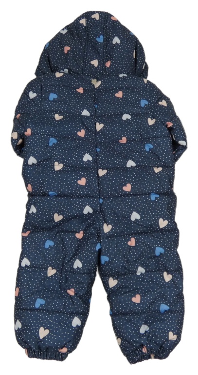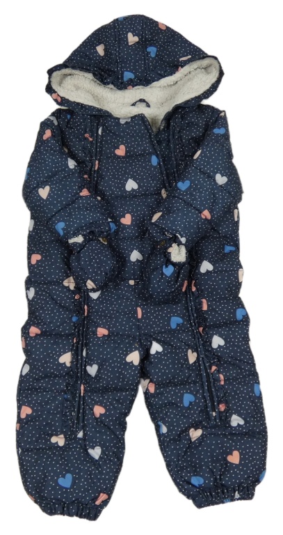 • Tmavomodrá puntíkatá šusťáková zimní kombinéza se srdíčky a kapucí + rukavice Tom Tailor