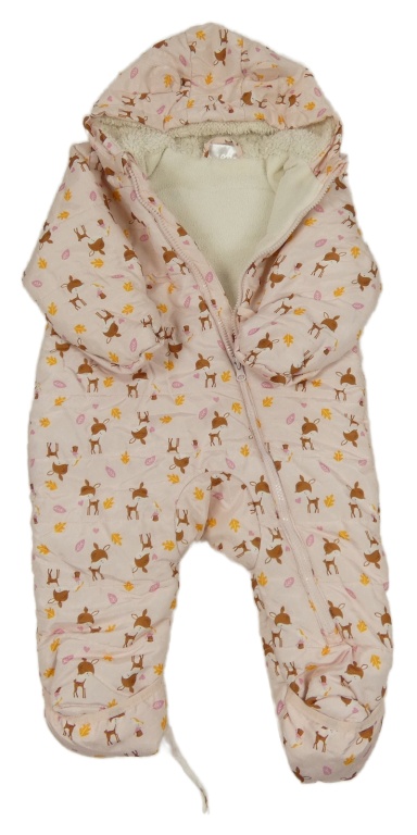 Světlerůžová šusťáková zimní kombinéza se srnkami a kapucí Ergee