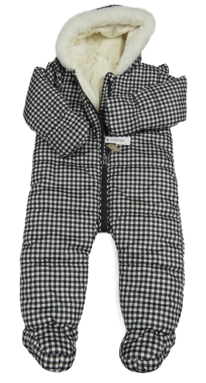 • Nové- Černo-bílá kostkovaná šusťáková zimní kombinéza s kapucí George