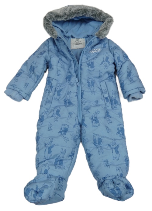 Modrá šusťáková zimní kombinéza s králíky a kapucí s kožešinou George
